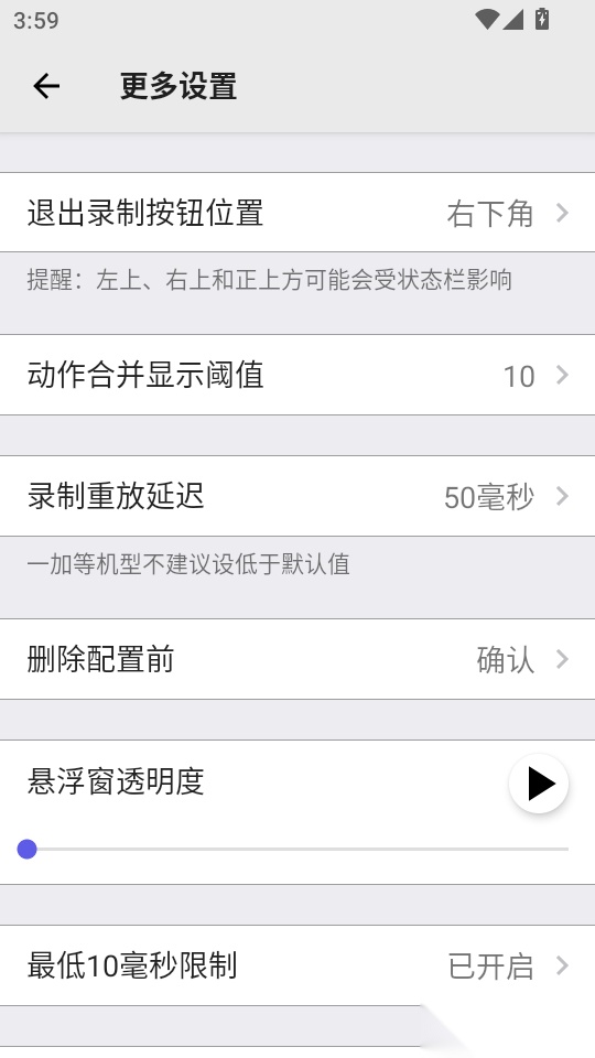 3. 接下來(lái)進(jìn)入“更多設(shè)置”選項(xiàng)界面,找到“懸浮窗透明度”功能的滑動(dòng)開(kāi)關(guān),通過(guò)滑動(dòng)即可進(jìn)行調(diào)節(jié)。