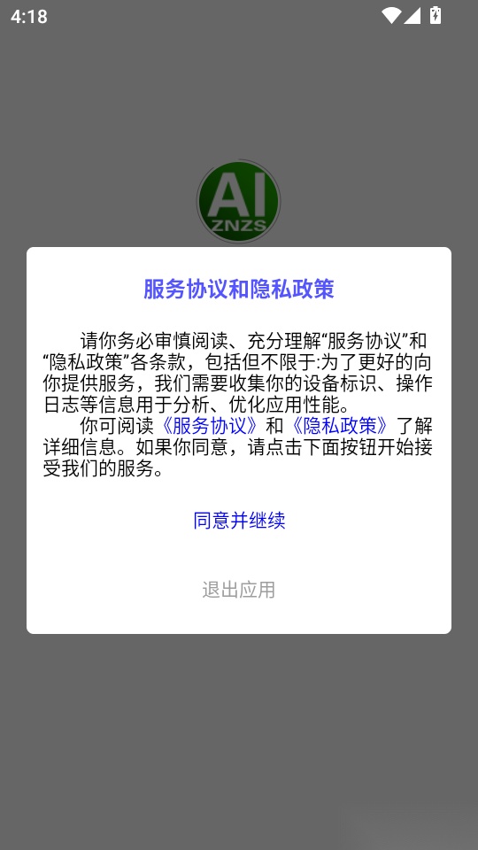1.首先打開軟件閱讀協議和隱私政策后,點擊“同意并繼續”按鈕進入程序