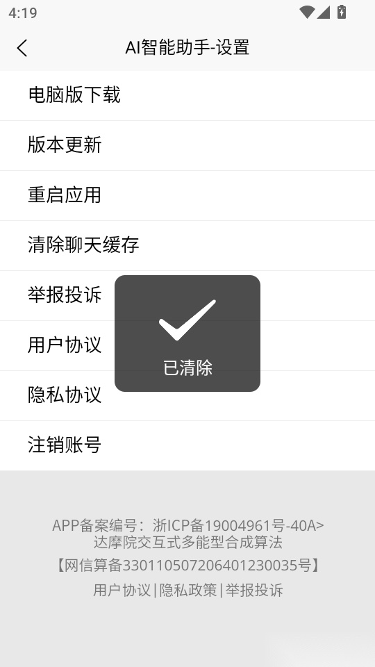 AI智能助手免費版如何將程序的聊天記錄緩存清空?
