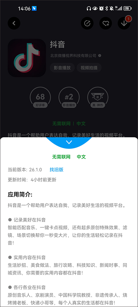 4、點(diǎn)擊進(jìn)入,即可看到抖音所有的歷史版本,選擇所需要的版本下載,并安裝即可。
