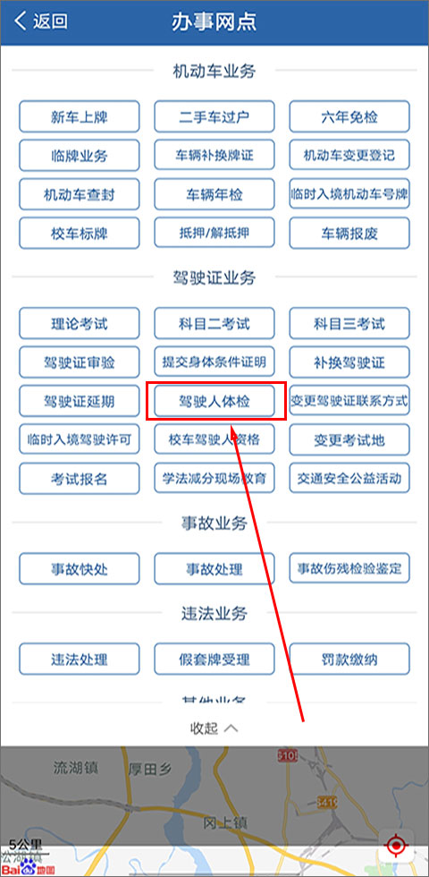 選擇更多,在彈出的業(yè)務服務中選擇“駕駛人體檢”進入;