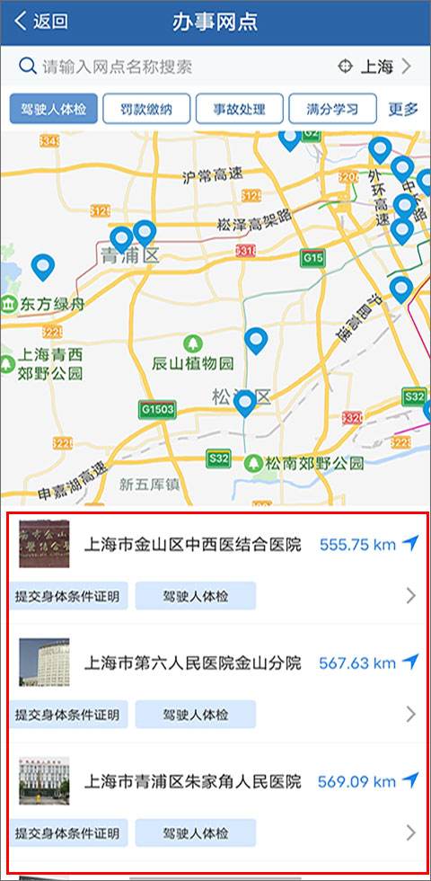 駕駛人除了參照此表,若要前往聯網機動車駕駛人體檢醫(yī)院體檢,還能通過打開“交管12123”app,點擊首頁下方“服務中心”欄目里的“辦事網點”。