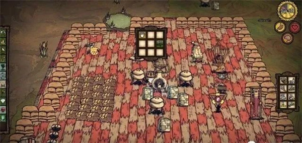 建家期:在地圖探出合適點位后盡快放下二本和鍋以便早日可以煮食物吃。家如果建在紅魚人房附近,就不愁沒食物吃了,撿來的魚可以曬肉干。有蜘蛛、蛇盡量殺掉,多撿怪物肉。1怪物肉+3個蘑菇或漿果或海草可以出肉丸,來度過前期饑腸轆轆的時候。