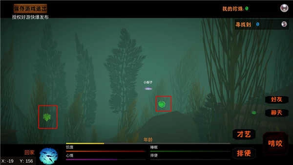 5、冒險中吃水里漂浮的樹葉或者三葉草恢復饑餓以及增長年齡,年齡滿了就能回出生點找龜仙人解鎖新魚種(再從小養到大)。