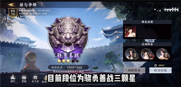 1、首先來看一下1v1模式之下的段位等級,目前段位為驍勇善戰(zhàn)的三顆星,正在匹配對手,調(diào)整陣容