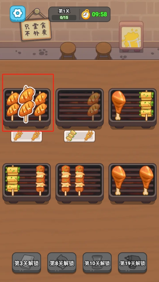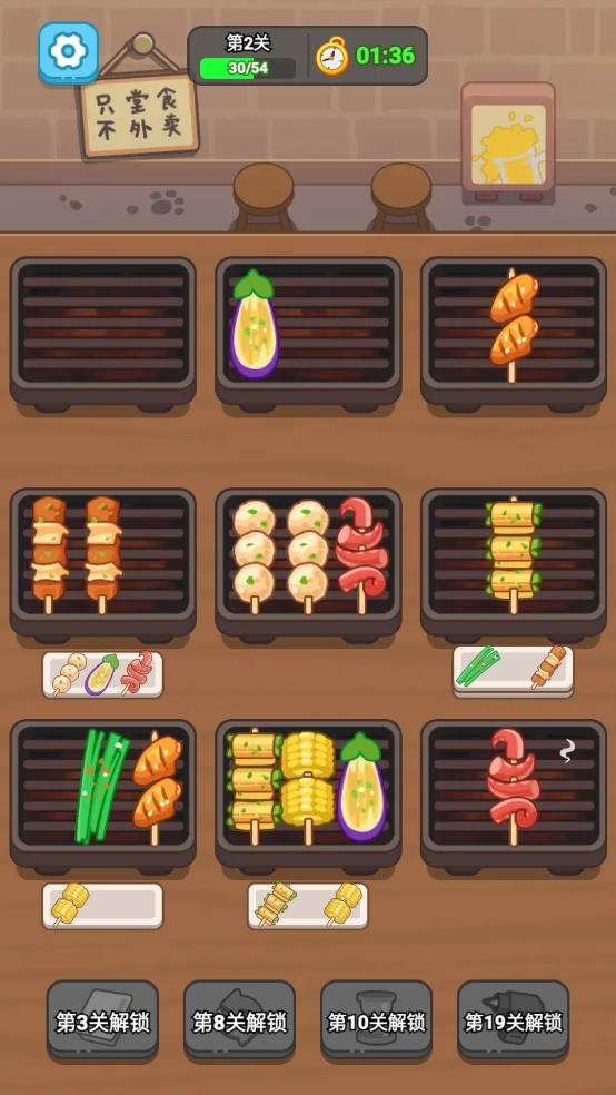完成對應(yīng)的烤串訂單可解鎖新的烤爐