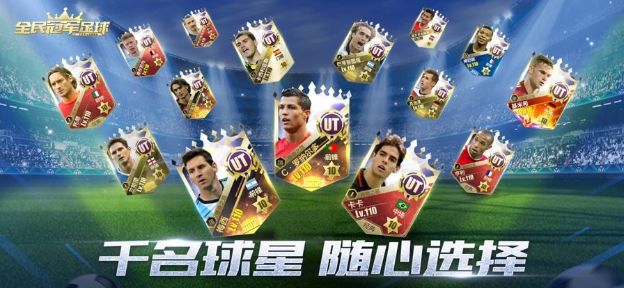 1、眾多人氣球星,足壇大咖,都將現身于游戲,與你一同帶領你組建的王牌戰隊和各國高手競技吧。