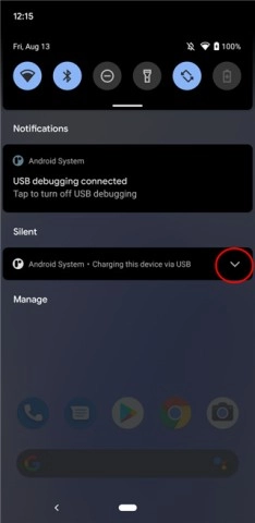3、在設(shè)備上,下拉菜單并點擊帶圓圈的箭頭,進行USB文件共享。